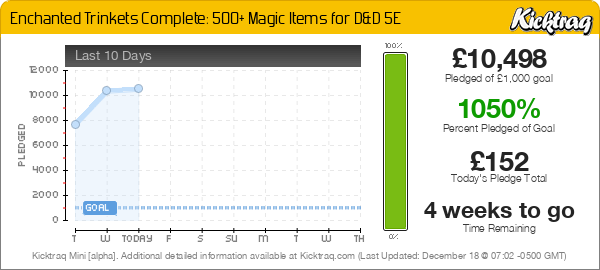 - WHY SPOTLIGHT THIS CAMPAIGN? Do you need over 500 magical trinkets for your 5e campaign? If you’re reading this on EN World, then I’d hazard the answer is yes. I’ll cover this in a bit more detail in the upcoming weeks, but for now heard over to Kickstarter if you want to learn more about the composition of these magic items.